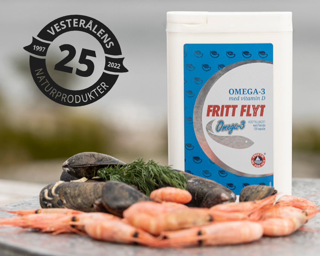 *Den gynnsamma effekten på hjärtat uppnås med ett dagligt intag på 250 mg EPA och DHA – och hjärna och syn med ett dagligt intag på 250 mg DHA. Med den rekommenderade användningen av Fritt Flyt får du dessa mängder.