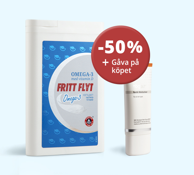 Fritt Flyt Omega-3 till halva priset + NBG fuktighetskräm på köpet. NBG®24:7 Nordic Moisturiser fuktighetskrämen kommer utan kostnad i din andra leverans.