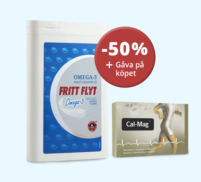 *Den gynnsamma effekten på hjärtat uppnås med ett dagligt intag på 250 mg EPA och DHA – och hjärna och syn med ett dagligt intag på 250 mg DHA. Med den rekommenderade användningen av Fritt Flyt får du dessa mängder.
